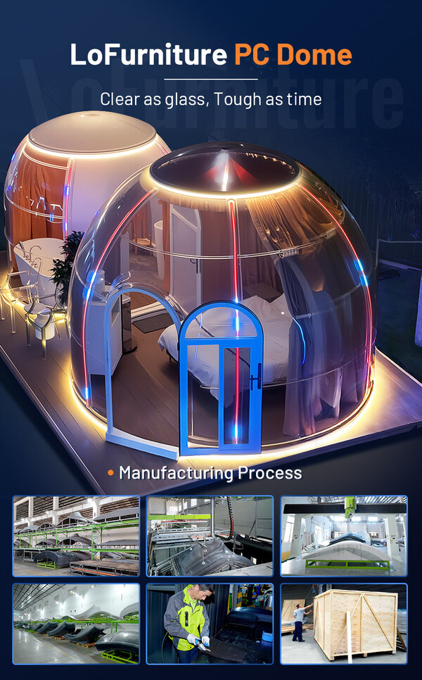 Headquartered in Foshan, Guangdong, Lo Furniture specializes in creating high-performance PC Dome solutions to meet your needs, budgets, and timelines. With a strong commitment to customer service, space planning, and trusted partnerships, we have applied our transparent PC Demo into campsites, eco-resorts, stargazing lodges, or private backyards and so on. Whether you’re launching a customized glamping project (tailored layouts, themed designs) or need large-scale procurement (bulk orders for resorts, hospitality groups)—our free consultation service delivers end-to- end support. To learn more, email export@lofurniture.com. Phone: +86 18902206281.