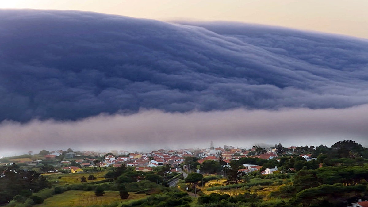 A rare “tsunami” roll cloud is shown filling Portugal’s sky following a heat wave, with temperatures over 107°F. (ARTHUR CARVALHO/AFP via Getty Images)